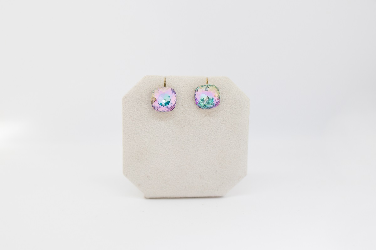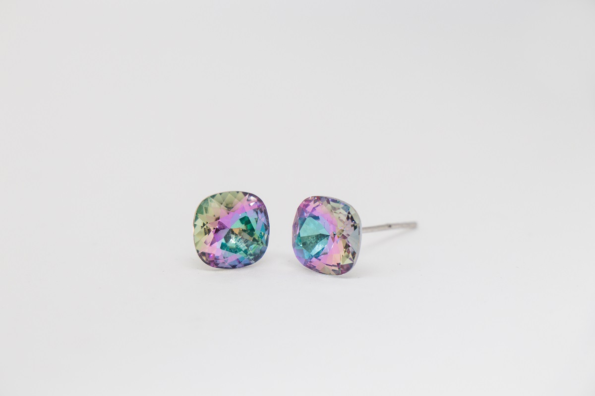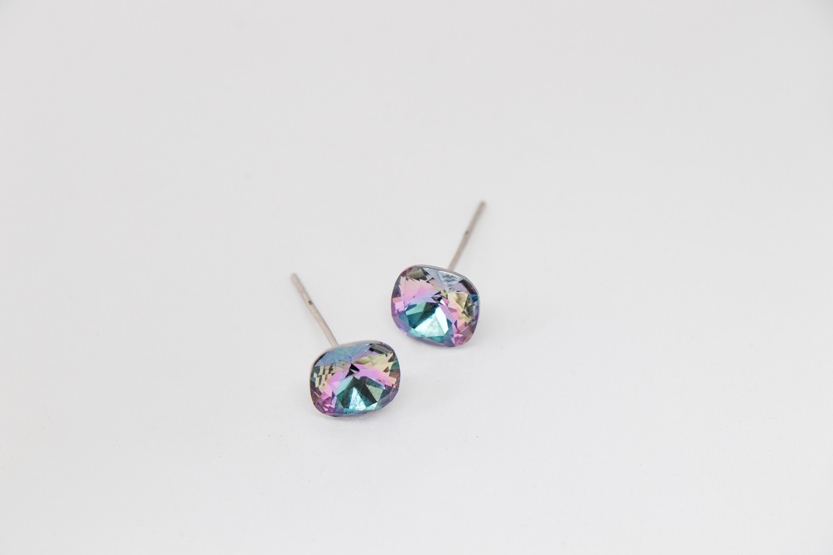 Strieborne nausnice s krystalom fialovej AB farby kostky.