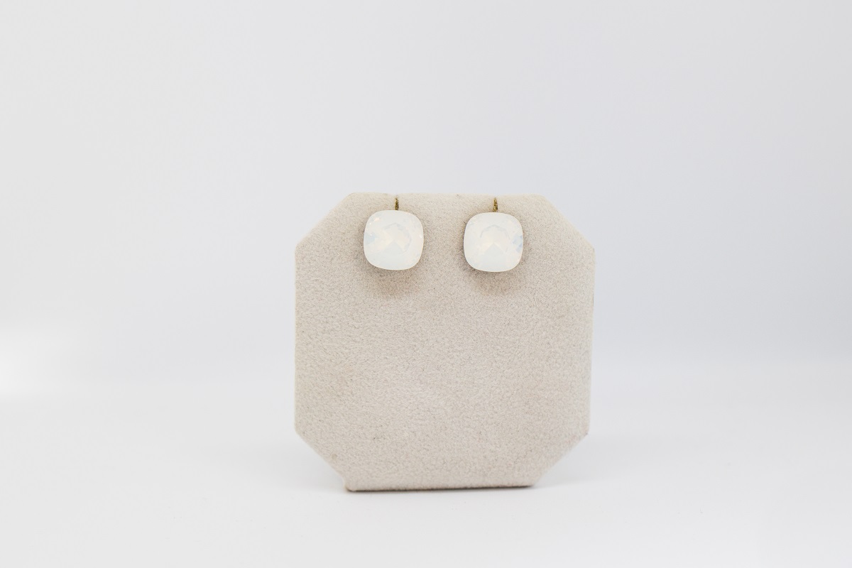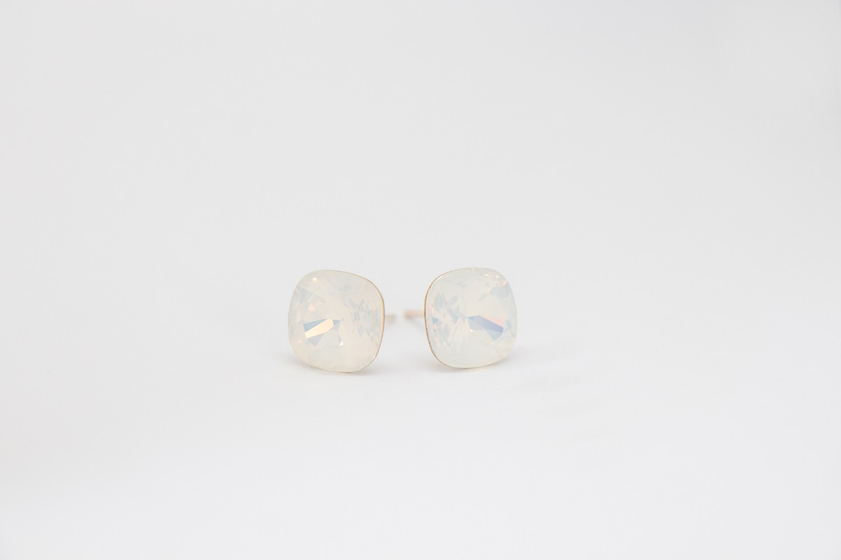 Strieborne nausnice s krystalom perletovej farby kostky.