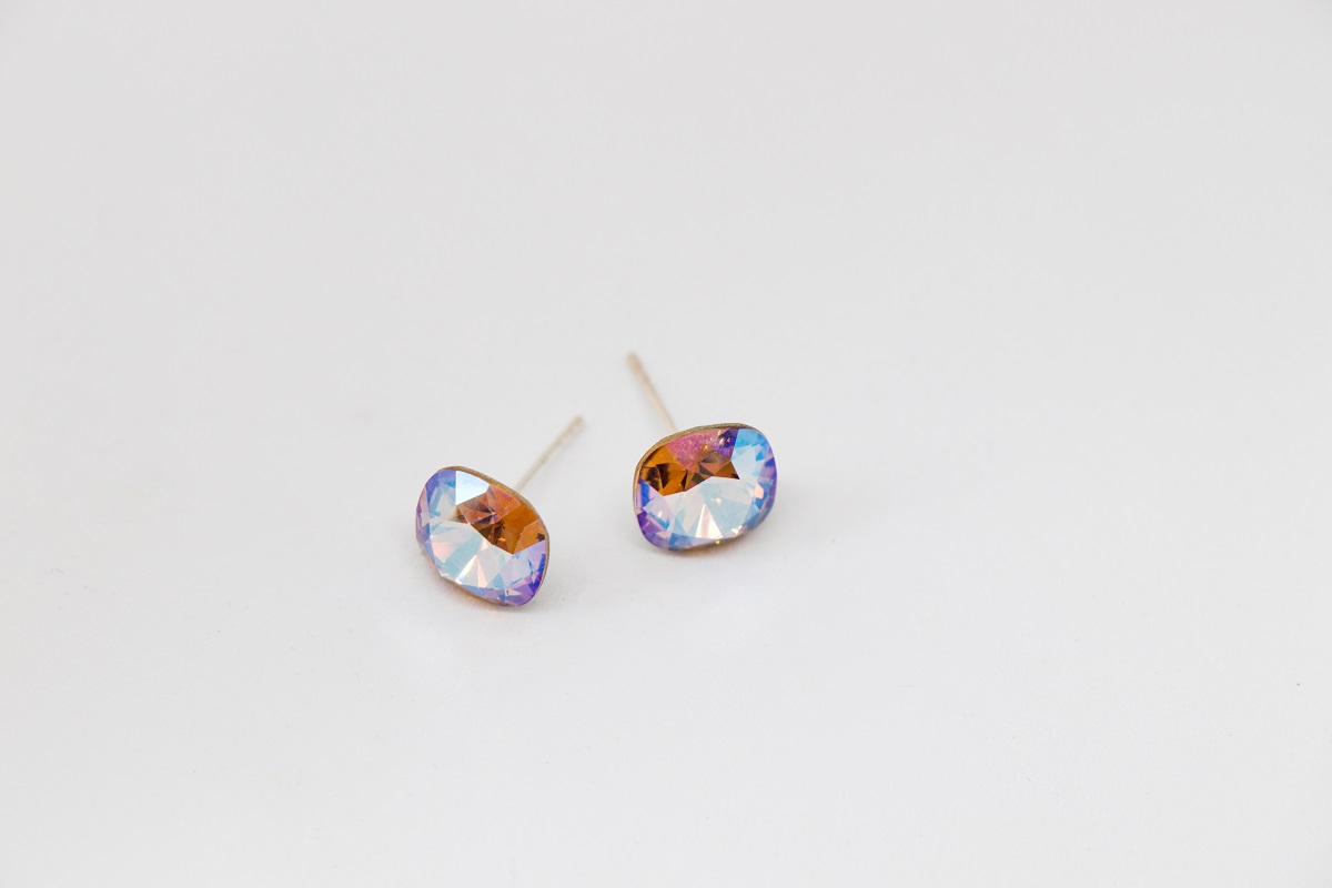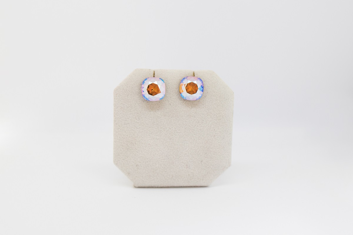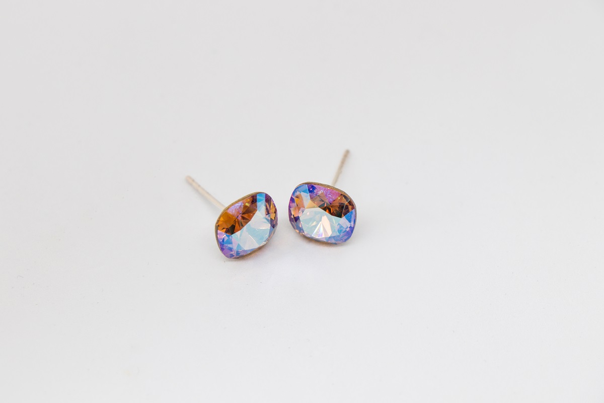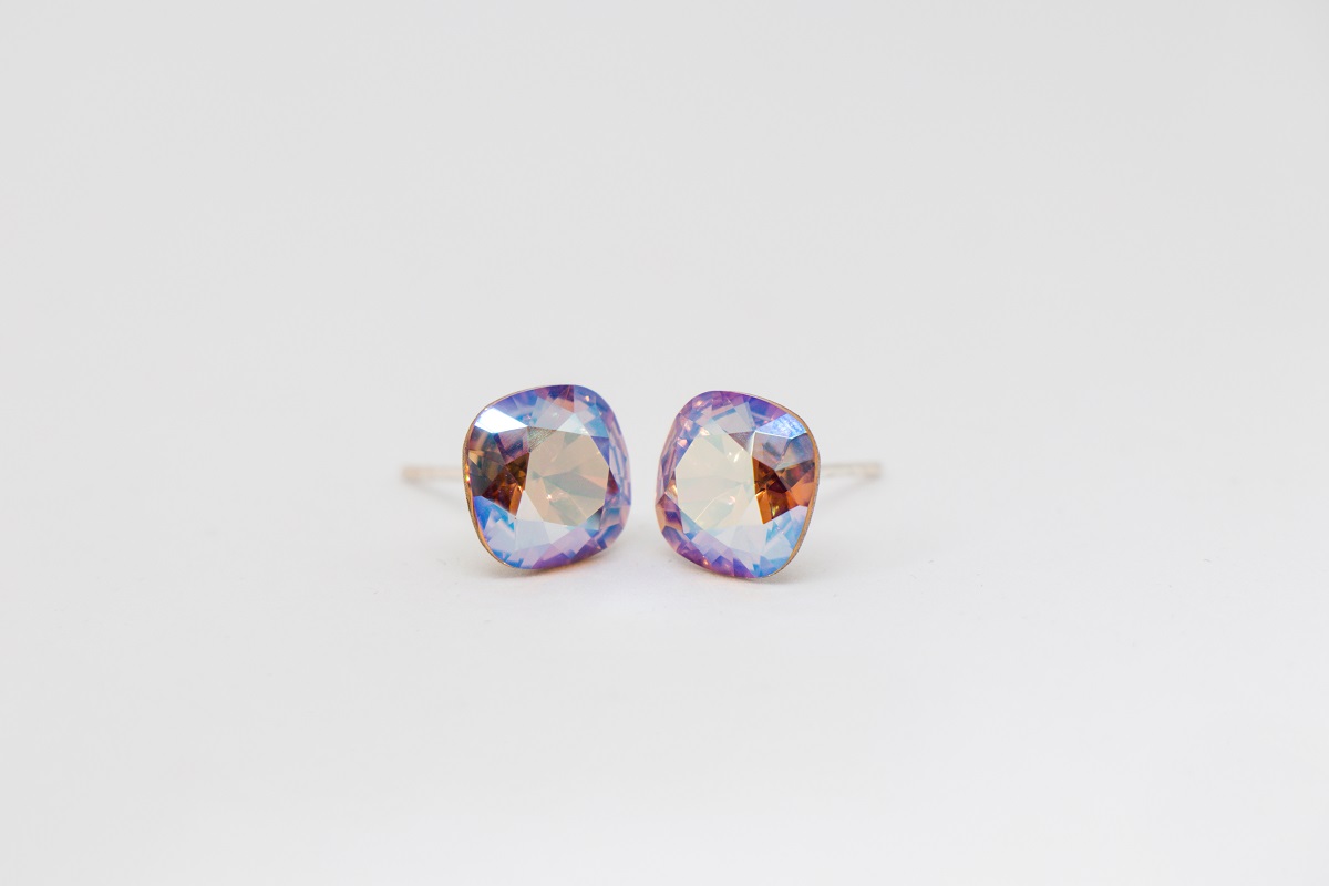 Strieborne nausnice s krystalom ruzovej AB farby kostky.