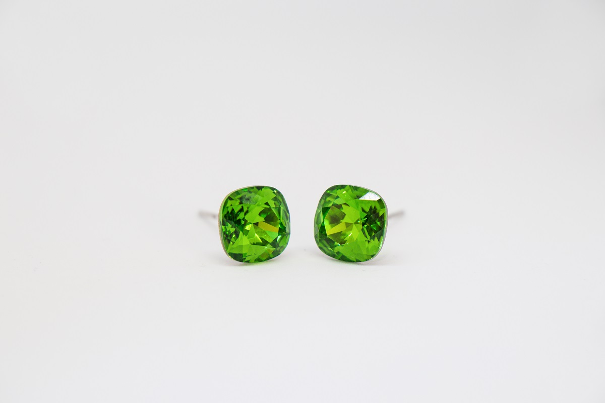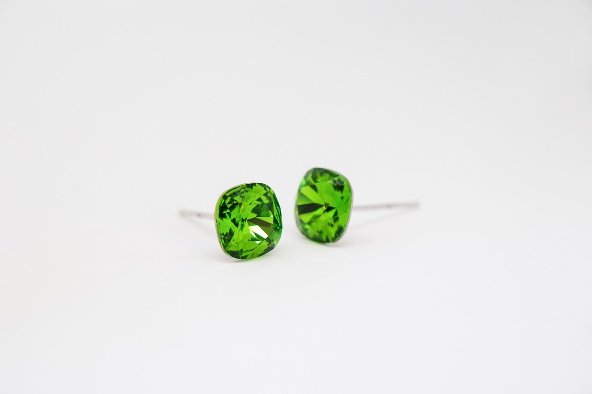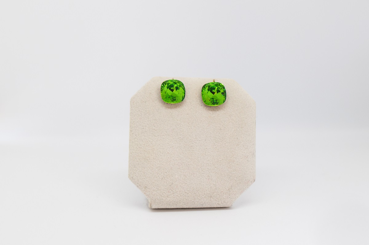 Strieborne nausnice s krystalom zelenej farby kostky.