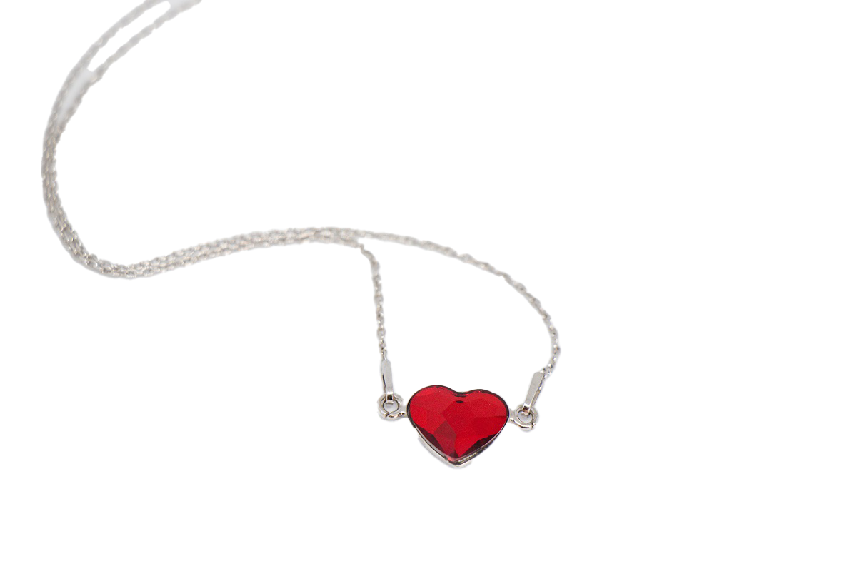 Strieborny nahrdelnik srdiecko so SW krystalom cervenej farby