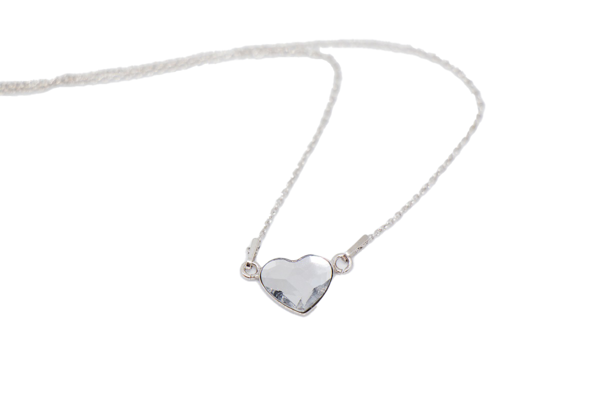 Strieborny nahrdelnik srdiecko so SW krystalom cirej farby
